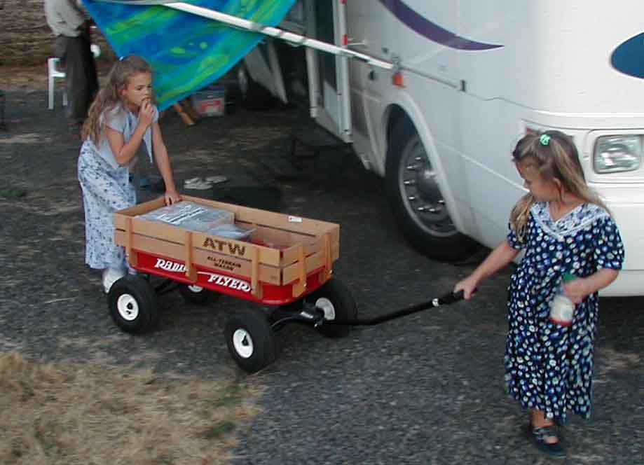 Great Granddaughters, Brianna and Ashley, wheeling the time capsule to